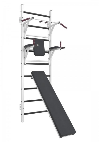 Комплектация: шведская стенка,навесной турник,брусья с подлокотниками и спинкой,доска для пресса