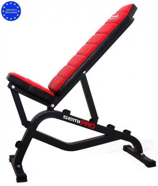 Высококачественная скамейка испытано нагрузкой 350 кг, коллекция SEMI PROfessional. Гарантированно устойчивая, особопрочная конструкция. Широкий диапазон регулировок позволяет осуществлять большое количество упражнений как со штангой, так и с гантелями, от жима лежа, сидя, развода гантелей, так и упражнений на отрицательном угле. Резиновые ножки с логотипом производителя исключают скольжение скамьи во время тренировок.