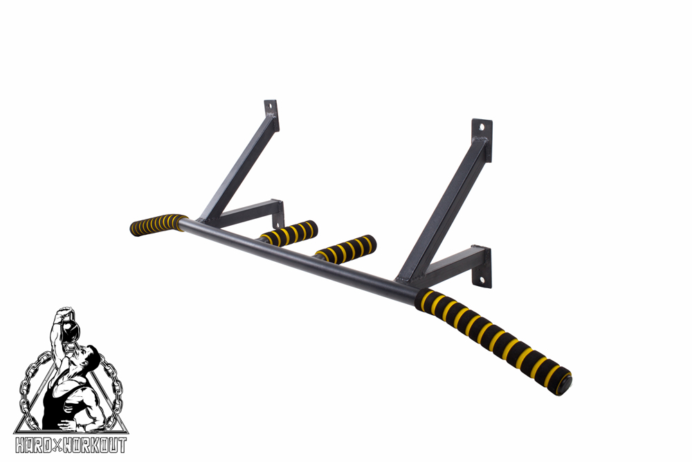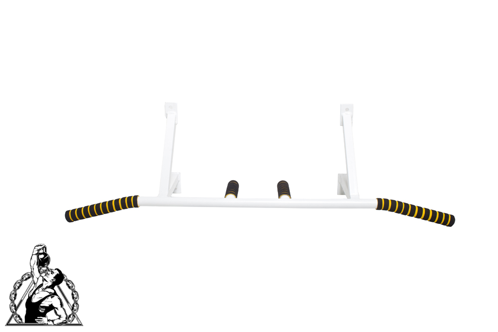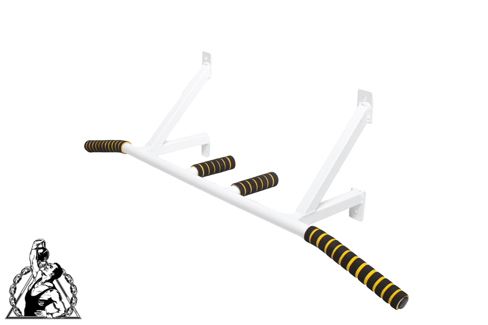 Турники, особенно наддверные, устанавливаются чуть выше дверного короба – их почти не видно, а польза огромная. Компактный турник «Три хвата» отступает от стены всего на 20 см, зато может выдержать одновременно двух людей благодаря сварной конструкции. Еще одна особенность модели – перекладина шириной 110 см, позволяющая ставить руки на любом удобном расстоянии для подтягиваний.