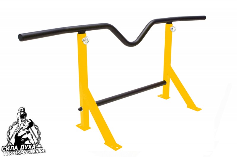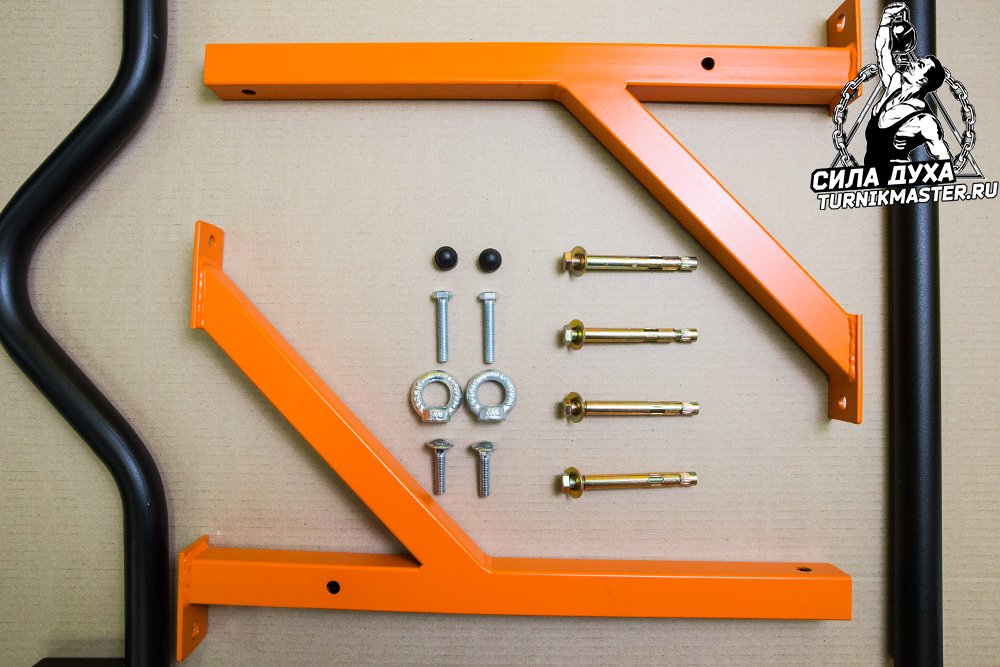 В отличии от стандартной модели 3 хвата, эта модель обладает большим выносом от стены и удлиненной перекладиной, изогнутой формой и двумя усиленными кольцами для подвеса тяжелых груш.